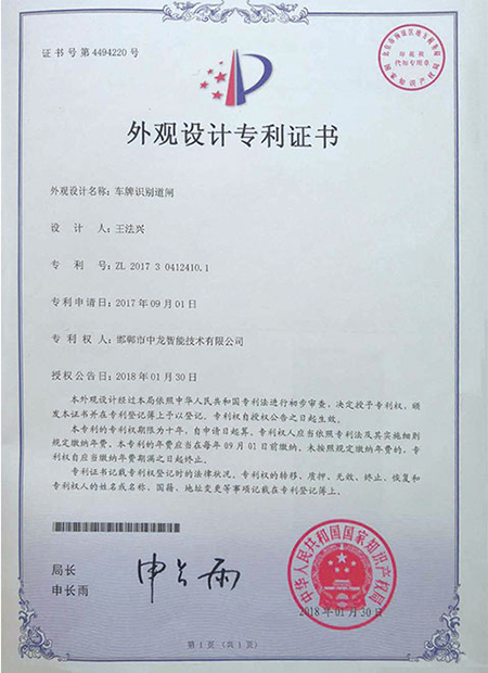 外觀注冊專利證書