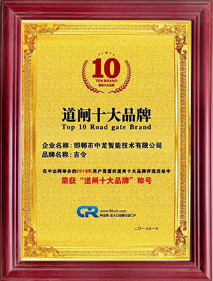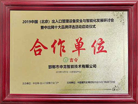 道閘十大品牌證書